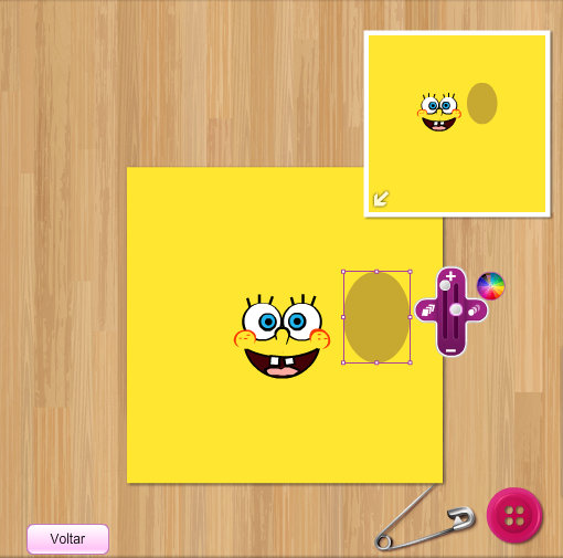 Deixe o círculo laranja (o mesmo usado nas bochechas) e diminua bem seu tamanho. Note que o meu nem dá para ver, de tão pequeno que fica.